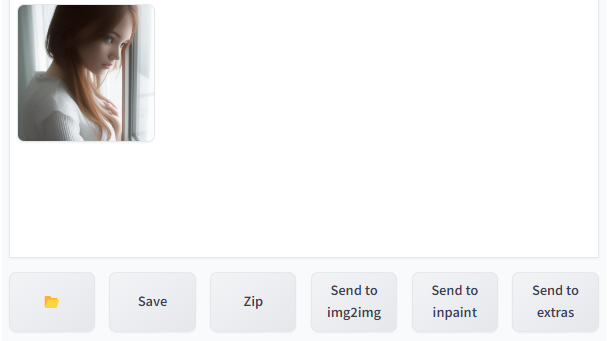 - 저장(Save) : 선택한 이미지를 저장합니다. Settings에서 "Always save all generated images(항상 저장)"을 체크해 두었을 경우, 아무런 변화가 없습니다.
