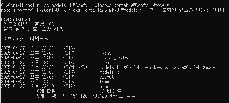 mklink /d models H:\ComfyUI_windows_portable\ComfyUI\models