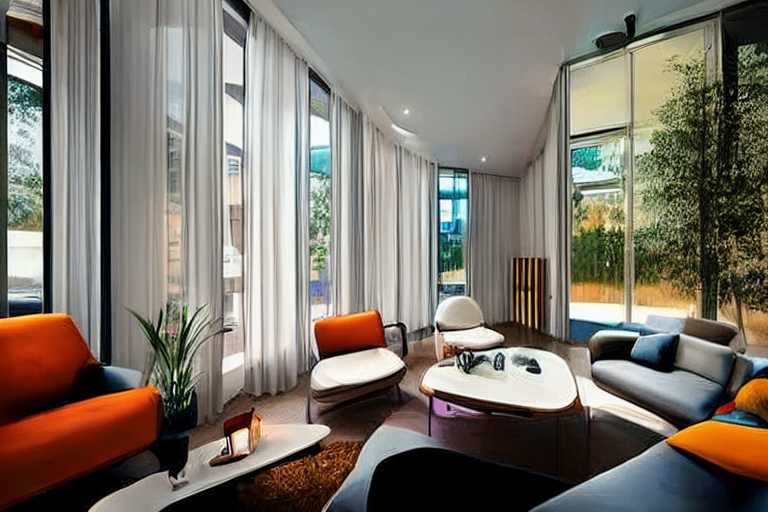 이 모델도 Shuffle 모델과 같이 형태는 사용하지 않고 색감만 사용하므로, 완전히 다른 이미지를 생성할 수 있습니다. 예를 들어 프롬프트를 "A modern living room"라고 입력하면 아래와 같은 이미지가 생성됩니다. 대략적으로 색감이 비슷함을 알 수 있습니다.