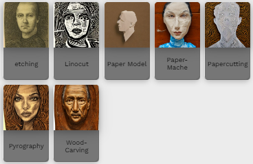 - 톱니바퀴 아이콘(오른쪽 위) : 수식어(Modifier)를 직접 입력 가능. 프롬프트 입력과 마찬가지로, 수식어를 콤마(,)로 분리하여 한줄로 만들 수도 있고, {} () [] | 등의 특수문자도 포함할 수 있습니다.