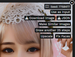 - Draw another 25 steps(25 단계 추가) : 해당 이미지 설정을 사용해 추론 횟수를 25번 추가합니다.
