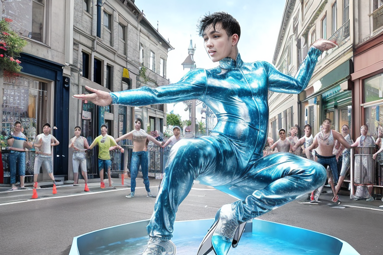 water elemental B-boys, dancing in busy street, enthusiastic crowd <hypernet:waterElemental_10:0.7>