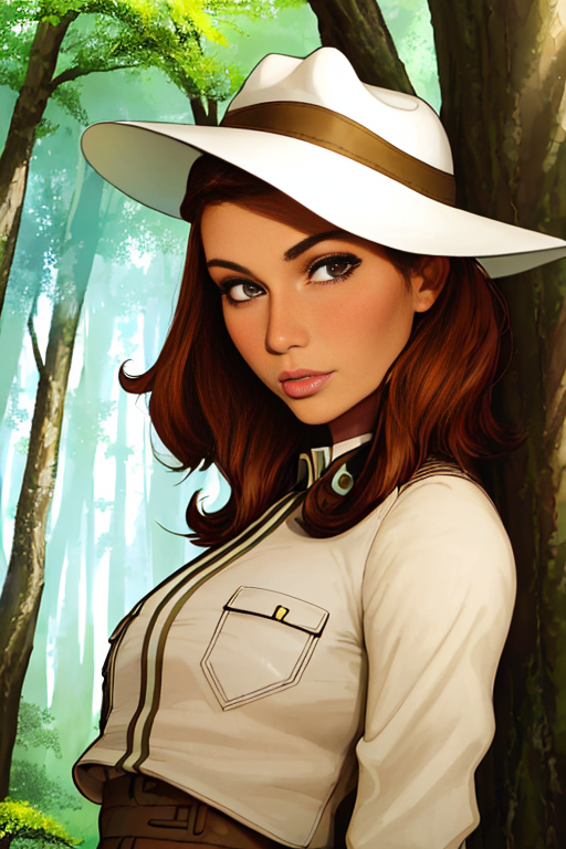 프롬프트: detailed face, a beautiful woman, explorer in forest, white top, short brown pants, hat, sky background, realism, small breast <hypernet:incaseStyle_incaseAnythingV3:1>